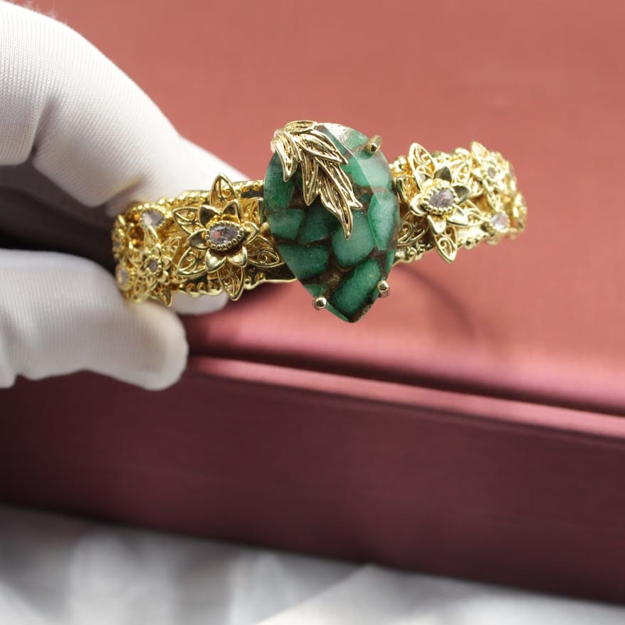 أسورة النحاس المطلي بماء الذهب عيار 21 بثلاثة أحجار طبيعية – أناقة متجددة تناسب كل إطلالة
