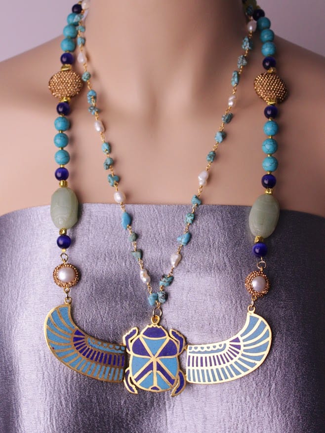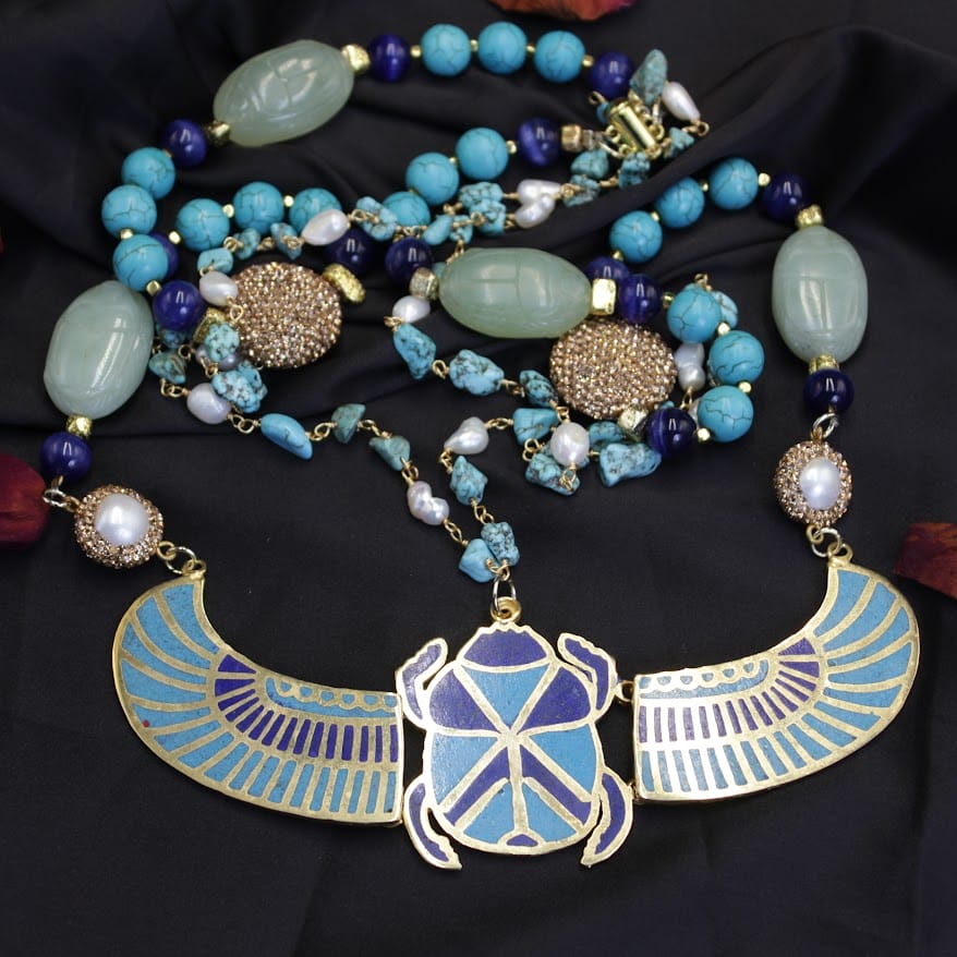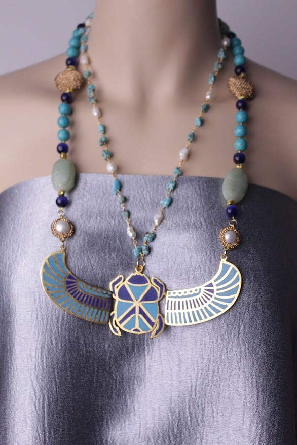 قلادة الجعران الفرعونية تقدّم لك كل ذلك في قطعة واحدة.